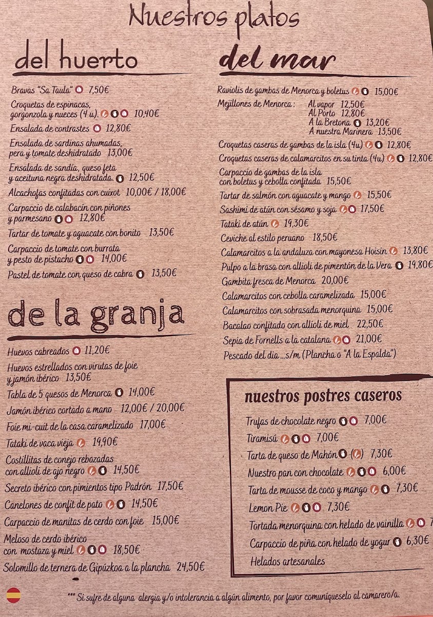 Sa Taula Menu